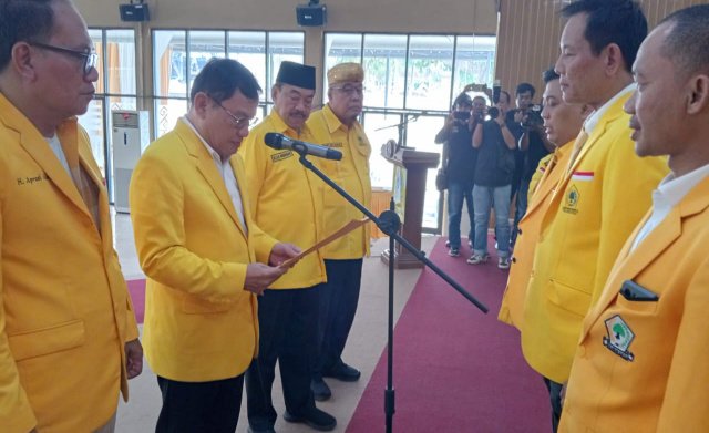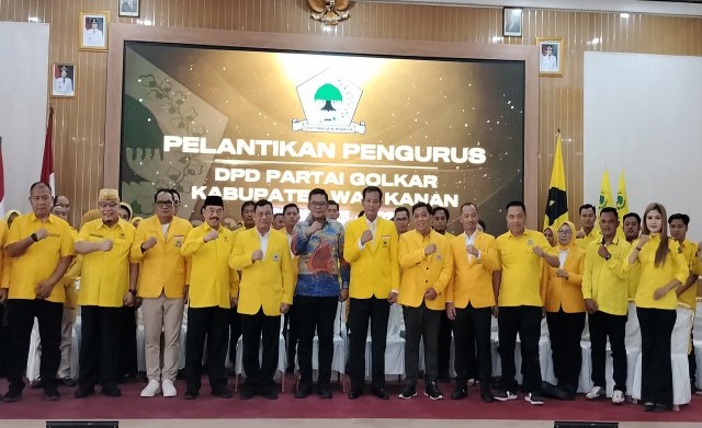 Selanjutnya, pelantikan dan pengukuhan pengurus dan personalia DPD Partai Golkar Kabupaten Way Kanan periode 2026-2031 di bawah komando Ketua Darlian Pone langsung dilakukan oleh Ketua DPD Partai Golkar Provinsi Lampung, Ir. H. Hanan A Rozak, MS didampingi Sekretaris H. Aprozi Alam, Ketua Harian, Riza Mirhardi, SH dan Bendahara H. Tony Eka Candra. (W9-jm)