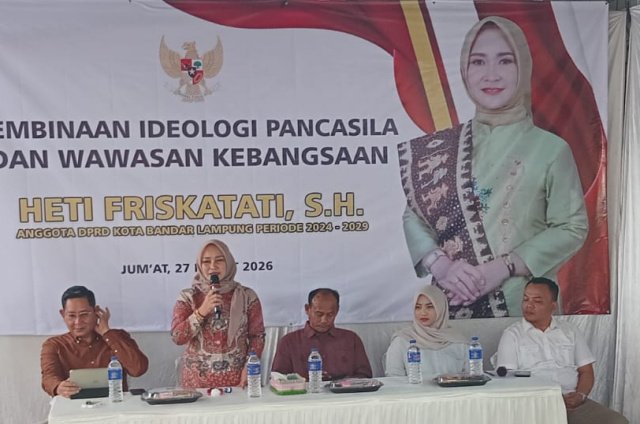 Bandarlampung, Warta9.com – Srikandi Partai Golkar DPRD Kota Bandarlampung Heti Friskatati, SH, melaksanaka sosialisasi pembinaan Ideologi Pancasila dan Wawasan Kebangsaan (IPWK) di Kelurahan Gunung Agung Kecamatan Langkapura, Jumat (27/3/2026).