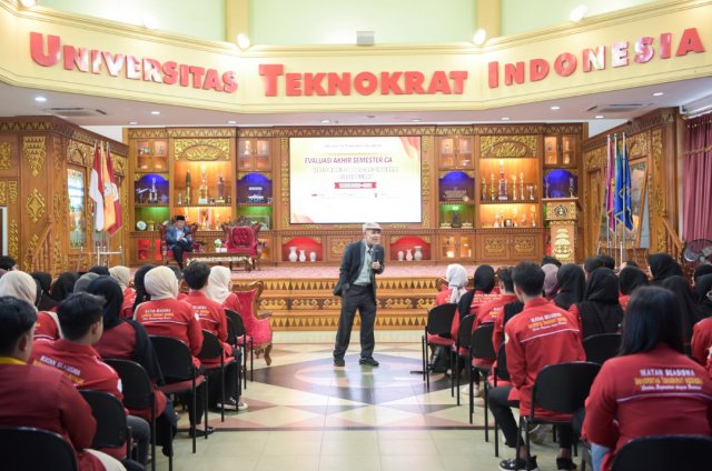 Kegiatan yang berlangsung di Auditorium Universitas Teknokrat Indonesia tersebut dihadiri ratusan mahasiswa dari berbagai angkatan. Kehadiran Ketua APTISI Pusat disambut langsung oleh Rektor Universitas Teknokrat Indonesia, Dr. H.M. Nasrullah Yusuf, SE., MBA., beserta jajaran pimpinan universitas.