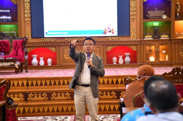 Pelatihan menghadirkan dua narasumber utama yang kompeten di bidangnya. Prof. Akhyar Rido, MA., Ph.D. menyampaikan materi bertema “Fun Learning dalam Pembelajaran Bahasa Inggris”, yang menekankan pentingnya strategi pembelajaran yang menyenangkan, partisipatif, dan berorientasi pada keterlibatan aktif siswa.