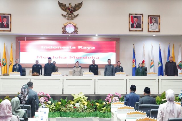 Rapat Paripurna Dewan dipimpin oleh Ketua DPRD Lampung Achmad Giri Akbar, didampingi para wakil Ketua DPRD Lampung H. Ismet Roni, Kostiana, Maulidah Zauroh dan Naldi Rinara, dihadiri Wagub Lampung Jihan Nurlela.