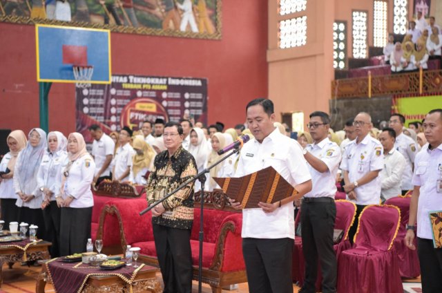 Pengukuhan Pengurus MKKS dilakukan langsung oleh Kepala Dinas Pendidikan dan Kebudayaan Provinsi Lampung Thomas Amirico, S.S.T.P, MH, di Gelanggang Mahasiswa Dr. HM. Nasrullah Yusuf, Rabu (28/1/2026).